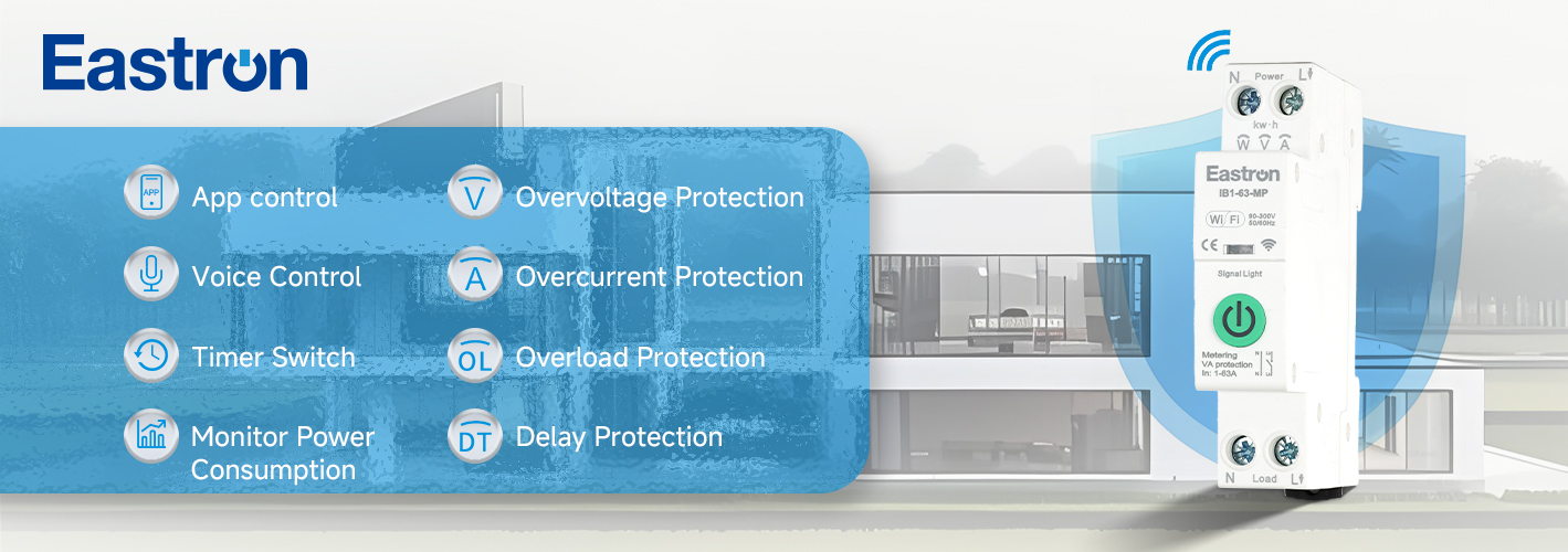 Um diese Probleme anzugehen, bringt Eastron den intelligenten Leistungsschalter der Serie IB1-63 auf den Markt. Maßgeschneidert für Smart Homes bietet es proaktiven Schutz und intelligente Steuerung und bildet eine solide Sicherheitsbarriere für den Stromverbrauch zu Hause.