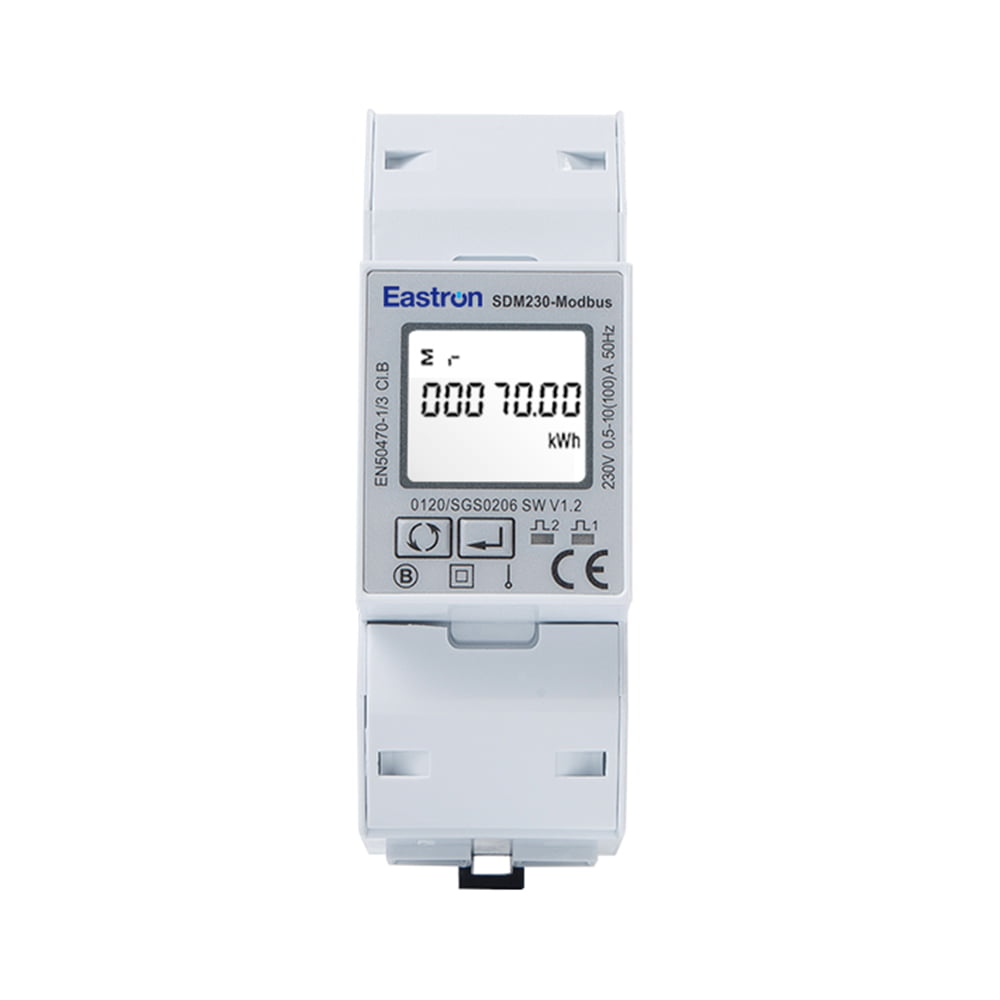 Der SDM230-Modbus ist ein einphasiger Multifunktions-Energiezähler mit RS485-100-A-DIN-Schiene und RS485-Modbus/DLT645-Ausgang. Es fehlen Wirkenergie, Blindenergie, Strom, Spannung, Leistung, Leistungsfaktor, Frequenz usw. Die Geräte unterstützen max. 100-A-Direktanschluss spart Kosten und vermeidet die Mühe, externe Stromwandler anzuschließen. Zwei Impulsausgänge und ein Kommunikationsanschluss (RS485 Modbus/DLT645) stehen für die Fernüberwachung und -einstellung zur Verfügung und eignen sich für die Überwachung des Energieverbrauchs in Wohn-, Solar-PV-, EV-Ladesystemen sowie Industrie- und Versorgungsanwendungen.