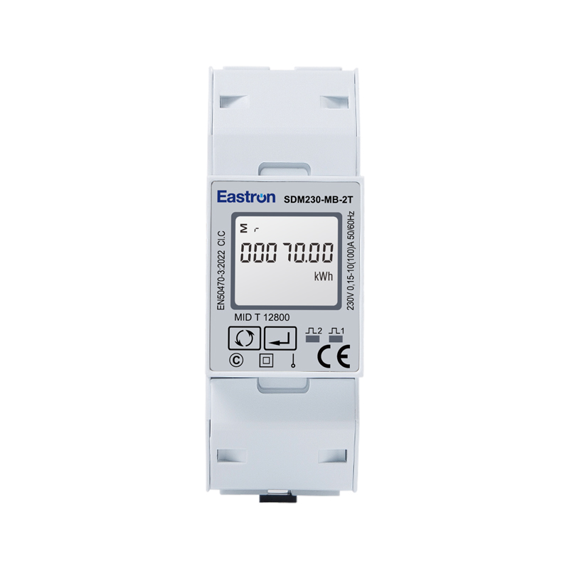 The SDM230-MB-2T is a Mbus Dual Tariff Din Rail Single Phase UL Energy Meter. It measures active energy, reactive energy, current, voltage, power, power factor, frequency, etc. The units support Max. 100A direct connection, saving the cost and avoiding the trouble to connect external CTs. Two pulse outputs and 1 communication port (RS485 Modbus/DLT645) are provided for remote monitoring and setting, suitable for monitoring energy consumption in residential, solar PV, EV Charging system, industrial and utility applications.